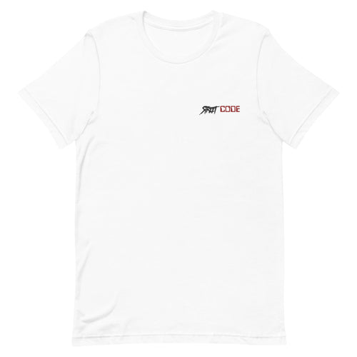 Street Code Embroidered Short-Sleeve Unisex T-Shirt white & red letters (3 colors available)